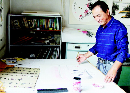 ——记瓜州县农民画家李进春 ![]() 李进春画画 麻雀,这是我们西北地区最寻常的鸟雀了。就因为寻常,春天的田野上,夏天的麦田里,秋天的草垛上,冬天的树枝上,它们无处不在。要想画得形神兼备,就要仔细观察它的形体、神态、姿势,画起来,还要符合环境、季节。”李进春说。 李进春是瓜州县锁阳镇的一个普通农民。不惑之年的他,平日里在田间深耕细作,傍晚点灯熬油涂涂画画。 乡村里鸟雀多,但想成为一个花鸟画家却不容易,想要画好鸟,首先要了解鸟类的基本知识、学习鸟类的形体结构、行为动态及生活栖息地的知识。对鸟类学知识的学习,李进春下了很大功夫,他趴在房顶上、蹲在树底下,一趴一蹲,就是老半天。 “画花鸟,是不能够从画册上照搬的,图谱上的鸟缺乏生动,显得呆板、僵硬。”李进春为此就在大自然中观察。 一只麻雀在树枝上掸翅、捉虫子,起飞,他都屏住呼吸紧盯着。这时候他完全忘了自己的存在,而沉醉于大自然。 同样,打碗碗花开了,八瓣梅开了,沙枣花开了,他也是一看就是大半天,常常误了吃饭。 李进春的花鸟画作品求真、求美,生动而朴实,散发出独特的自然气息。30年来,他在乡村里观察、写生,从未中断过。他创作了大量的花鸟画,村里人提到他,都亲切地叫他“画鸟儿的老李”。而他也将花鸟画创作作为自己一生的事业坚持着。 “我就是个农民,农村的花鸟能带给我回归自然的信念。如果说我选择画花鸟有啥理想,那就是我爱家乡的缘故,我要画一辈子花鸟。” 李进春有个艺名叫愚峰,号祁连山人。 他的花鸟画多以《春归》《双栖图》《秋收》《平安图》《乐游图》等做题,而且发布在很多书画交流网上。他说,这些年网络提供了交流的便利,可以和天南地北的很多花鸟画家直接交流。 笔耕不辍的李进春,目前已有20多幅作品入选省、市、县书画展,并被吸收为甘肃美术家协会会员。 □本报记者陈思侠